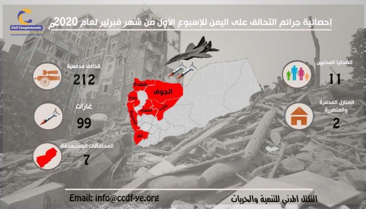 أرصد ما حولك إحصائية جرائم التحالف على اليمن للاسبوع الأول من شهر فبرايرلعام 2020 On فبراير 5, 2020 Share Share FacebookTwitterGoogle+WhatsAppPinterestالبريد الإلكترونيLinkedinTelegramPrint