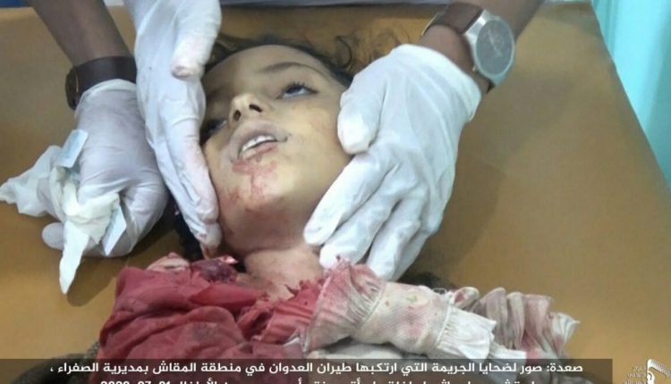 ومن منطلق الانتصار لمظلومية الشعب اليمني وحقه في الدفاع عن شعبه ووطنه وعن الحقوق الإنسانية في الحياة الكريمة في ظل مجتمع دولي عادل يصون الحقوق والحريات ويعمل على ترسيخ قواعد المحاسبة والانتصار للعدالة، فقد عبر المركز عن ادانته واستنكاره للجريمة البشعة التي ارتكبت بحق أبرياء من أبناء منطقة المقاش مديرية الصفراء – محافظة صعدة، مشيرة الى اقدام الطائرات الحربية التابعة للتحالف السعودي في قرابة الساعة الحادية عشر مساء يوم امس الاربعاء الموافق 1 يوليو على استهداف منازل المدنيين في منطقة المقاش ما اسفر عن مقتل طفلة وامرأة وجرح ستة اخرين بينهم اربعة اطفال وبشكل متعمد تم استهداف مدنيين واعيان مدنية.