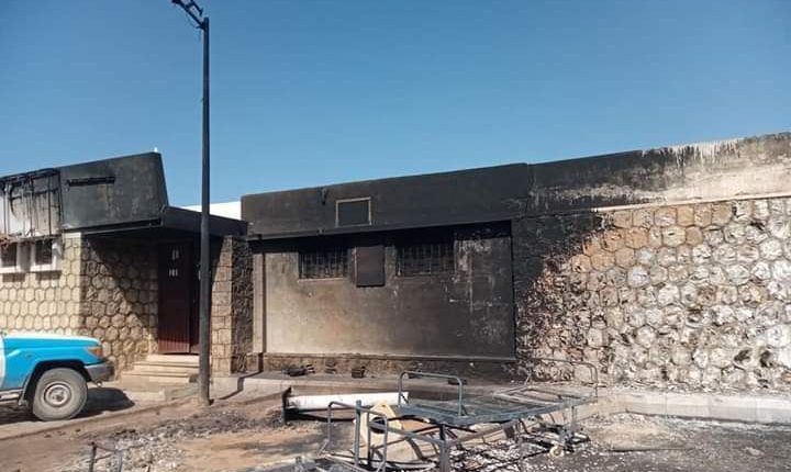 وبينت المصادر أن الحريق التهم سور المبنى البوابة الرئيسية بالإضافة إلى غرفة حراسة المستشفى.