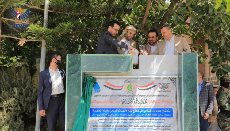 President of the Supreme Political Council, Mahdi Al-Mashat, on Sunday laid the foundation stone and inaugurated work on a number of projects in the water and sanitation sector in the capital, Sanaa, at a total cost of 17,326,000 dollars.