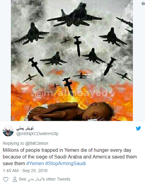 ودعا الناشطون في تغريداتهم على “تويتر” الحكومات التي تبيع أسلحتها للسعودية، لوقف بيع هذه الأسلحة لأنها بذلك تُعتبر شريكة في الحرب، التي أودت بحياة ما يقارب الـ400 ألف يمني، منذ العام 2015.