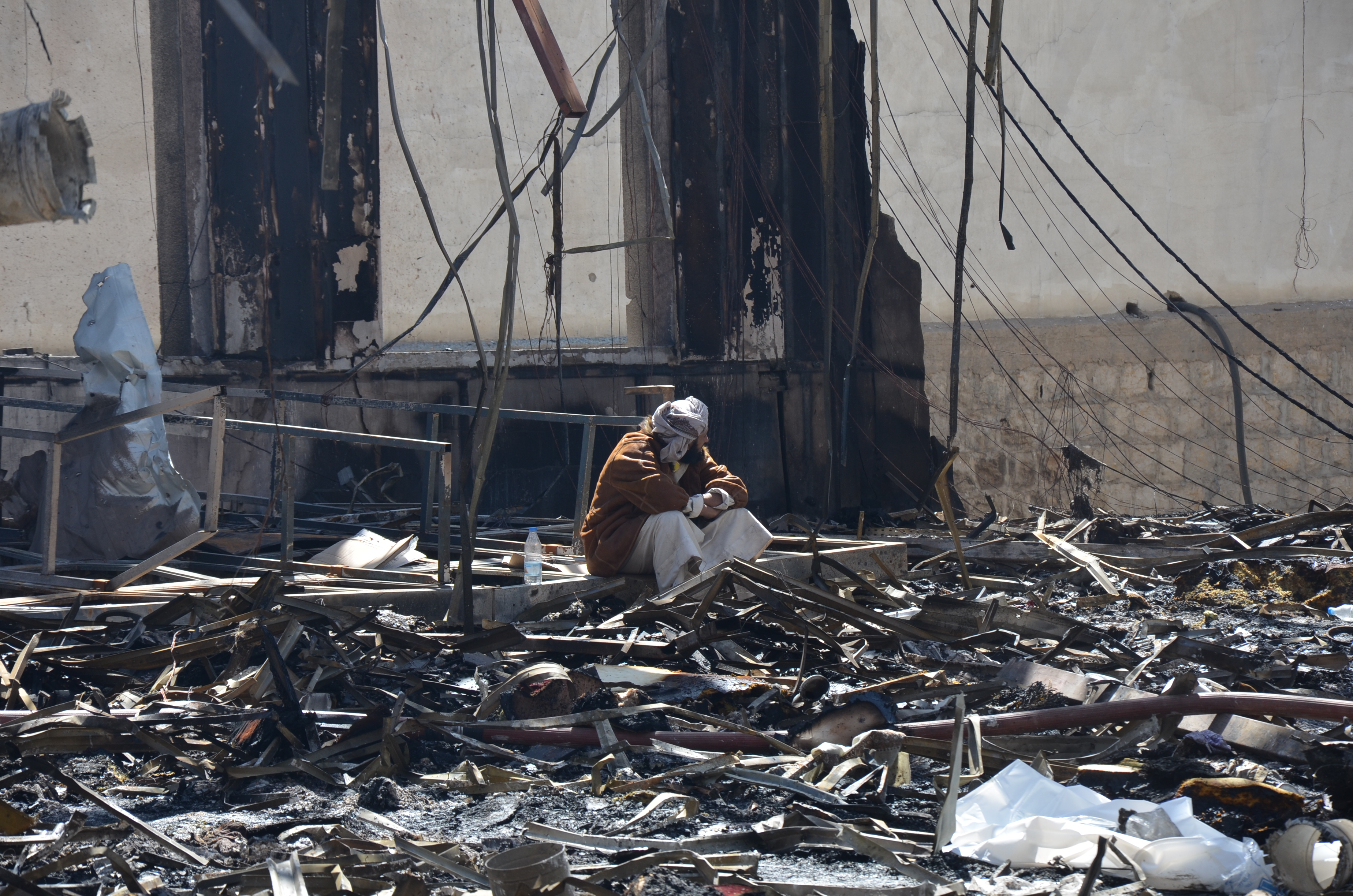 حسن محمد إبراهيم عبد 42 سنة: أحد سكان الحي يصف الواقعة لنا ولا زالت ملامح الرعب والفزع تكسو وجهه ويقول (خرجت من منزلي قبل أذان العصر لأشتري ماء وسجائر من البقالة، وأثناء سيري سمعت صوت تحليق طيران وماهي إلا لحظات أقرب إلى الثواني وقع الانفجار وشعرت بشيء يدفعني للوراء لألتفت وأجد ألسنة اللهب والدخان تتصاعد من الصالة الكبرى، ومن شدة الرعب لم استطع التحرك من مكاني وتسمرت أقدامي ورأيت الناس يتدافعون خارجين من البوابة الرئيسية للصالة وهم يصرخون، وكأني أشاهد يوم الحشر، ورأيت الناس من الجيران والمتواجدين في المنطقة يجرون باتجاه الصالة يحاولون اسعاف المصابين، حاولت الذهاب مثلهم ولكن صدمة الانفجار وهول المنظر أصابتني بحالة من الشلل ولم أتمكن من الحركة، وأضاف قائلاً لا أدري هل أشعر بالحزن للضحايا والأسف لأنني لم أتمكن من القيام بالمساعدة في انقاذ واسعاف الضحايا، أم أشعر أنني شخص محظوظ لأنني نجوت من الغارة الثانية التي راح ضحيتها الكثير من المسعفين، وأطلق العنان لعاصفةٍ من الأسئلة الغاضبة، لماذا يستهدفون الصالة الكبرى؟ انه عزاء وكل الموجودين في الصالة هم من المعزيين، لا يوجد في المنطقة مخازن سلاح ولا منصات للصواريخ ولا ثكنات عسكرية للحوثيين، في أي ديانة وفي أي شرع يتم قصف صالات العزاء والأحياء السكنية الآمنة).