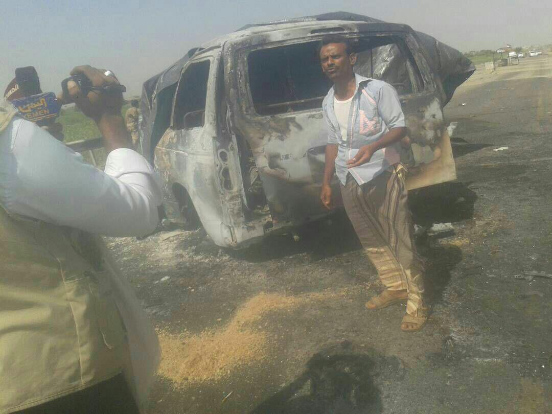 طيران التحالف يستهدف مسافرين على الخط العام بمنطقة الخميس التابعه لمديرية الزهره 17-11-2017