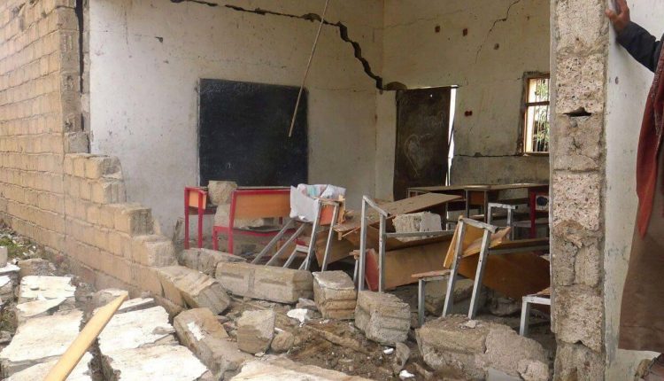 المحافظاتصعدة طيران التحالف يستهدف مدرسة عقبة بن نافع بمنطقة آل عقاب مديرية سحار 14 – 9 – 2016 On يناير 5, 2019 Share استهداف طيران التحالف العربي بقيادة السعودية مدرسة عقبه بن نافع بمنطقة آل عقاب بمديرية سحار، مما أسفر عن تدميرها وتضرر كبير في المنازل المجاورة لها Share FacebookTwitterGoogle+WhatsAppPinterestالبريد الإلكترونيLinkedinTelegramPrint