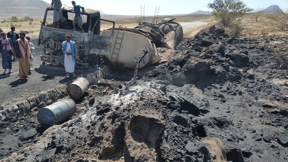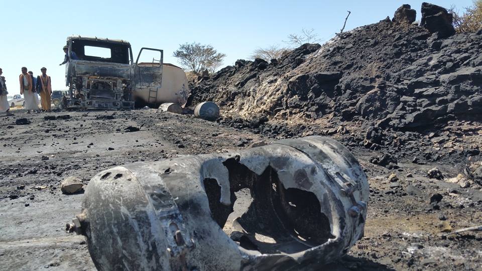 المحافظاتصعدة طيران التحالف يستهدف ناقلة نفط بمنطقة ال عمار مديرية الصفراء 8 – 10 – 2016 On يناير 5, 2019 Share صور لناقلة النفط التي استهدفتها طيران التحالف العربي بقيادة السعودية بمنطقة آل عمار بمديرية الصفراء وأدت إل مقتل مواطنين كانوا على متنها .. Share FacebookTwitterGoogle+WhatsAppPinterestالبريد الإلكترونيLinkedinTelegramPrint