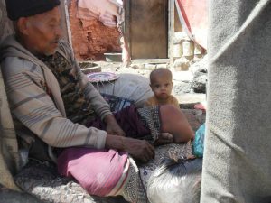 وأقسم محسن، وأطفاله الستة حوله، أنه لم يتلقى شيئا عندما زار لوكوك المخيم: “ورب الكعبة لم يعطونا حاجة .. لا فراش ولا طرابيل .. ولا معنا إلا هذا الصرف الذي يعطونا رأس الشهر وما يكفينا لكن قلنا يالله..ما معنا إلا نصبر”.