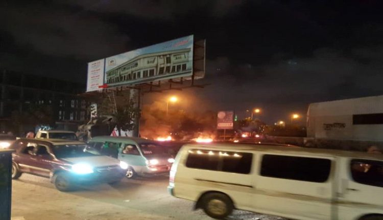 وقال مواطنون إن محتجين قطعوا الطرقات الرئيسية في مديرية المنصورة بالأحجار وإضرام النار في إطارات السيارات التالفة ومنعوا المواطنين من المرور، من جهة دوار “كالتكس” وصولا إلى الشارع العام في المديرية، إضافة إلى قطع شوارع رئيسية في مديرية خور مكسر مثل شارع الشابات (ساحة العروض) وطريق ساحل أبين.