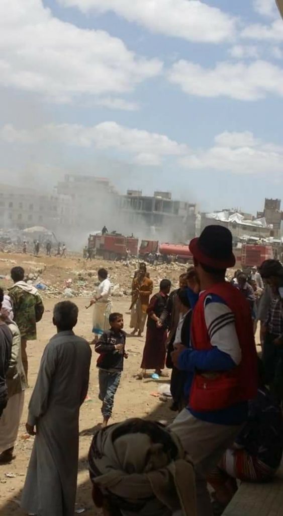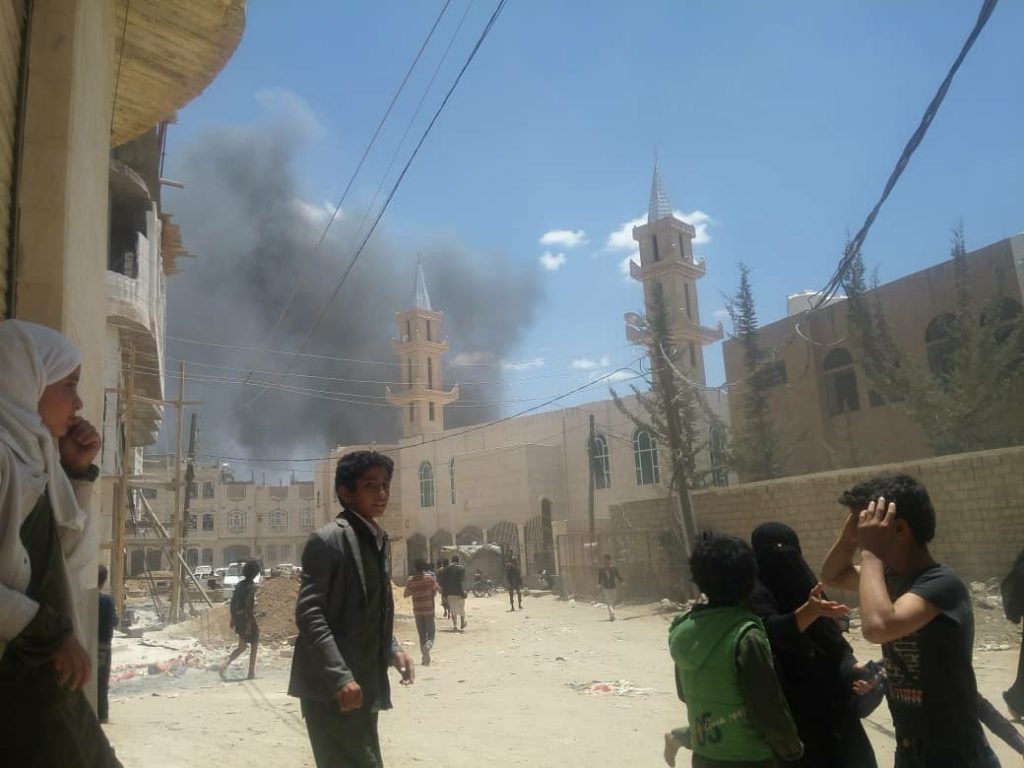 انتشرت على موقعي فيس بوك وتويتر عشرات مقاطع الفيديو لجريمة استهداف طيران التحالف السعودي الإماراتي حي سكني بجواره مدرسة الراعي في منطقة سعوان بالعاصمة صنعاء.