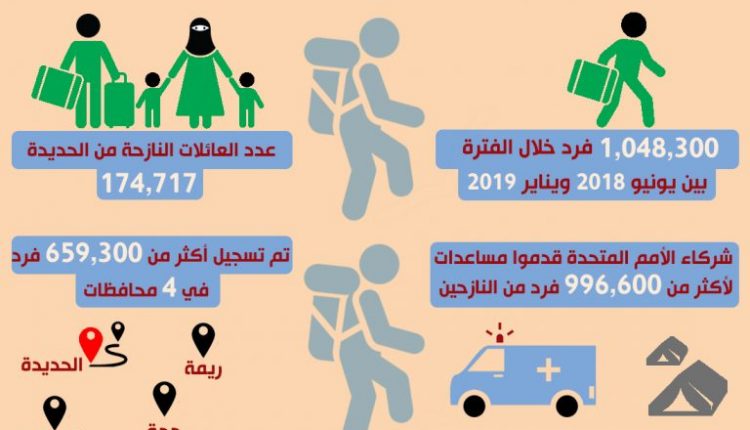 التوثيق المرئيمعرض الصور إنفوجرافيك يوضح عدد النازحين الفارين من جحيم الحرب في الحديدة On أبريل 10, 2019 Share إنفوجرافيك يوضح عدد النازحين الفارين من جحيم الحرب في الحديدة خلال الفترة بين يونيو 2018 و 15 يناير 2019 Share FacebookTwitterGoogle+WhatsAppPinterestالبريد الإلكترونيLinkedinTelegramPrint
