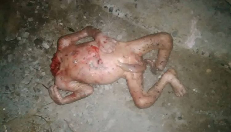 صورة مؤثرة لطفل رضيع عثر علية منزوع الرأس بفم كلب