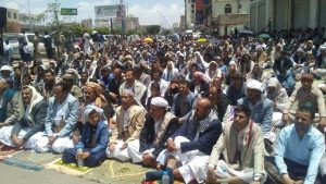 الروحاني يؤكد عدم تجاوب الأمم المتحدة والمحتجون يؤدون صلاة الجمعة أمام مكتبها بصنعاء