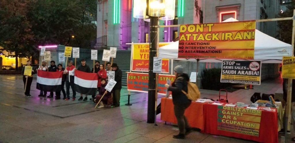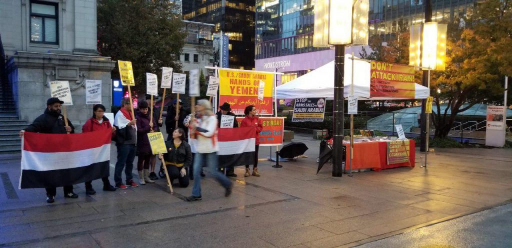 شهدت مدينة فانكوفر الكندية تظاهرة احتجاجية جديدة على جرائم حرب التحالف الذي تقوده السعودية والإمارات بدعم أمريكي وبريطاني مباشر على اليمن، مطالبة بسرعة وقف الحرب ورفع الحصار عن اليمن ووقف صفقات السلاح الكندية مع دول التحالف.