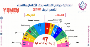 التوثيق المرئيمعرض الصور احصائيات مؤسسةيمانيات للمرأة والطفل” جرائم شهر ابريل 2019″ On مايو 6, 2019 Share Share FacebookTwitterGoogle+WhatsAppPinterestالبريد الإلكترونيLinkedinTelegramPrint