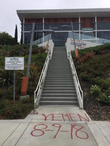 دروزين، وهو فنان كوميدي يعيش الآن في سان فرانسيسكو، ركن سيارته في مكان قريب ومشى إلى حرم شركة لوكهيد مارتن يوم السبت في 27 أبريل. وبعد أن كتب كلمة اليمن على الواجهة، اتصل بالشرطة التي بدورها أخذته إلى السجن واتهم دروزين بالتخريب (تاريخ محاكمته هو 26 يونيو).