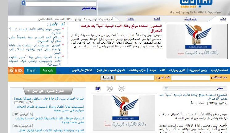 وكانت وكالة الأنباء اليمنية “سبأ” قد أعلنت في وقت سابق عن تعرض موقعها الالكتروني لاختراق من قبل قراصنة ونشر أخبار لأساس لها من الصحة.