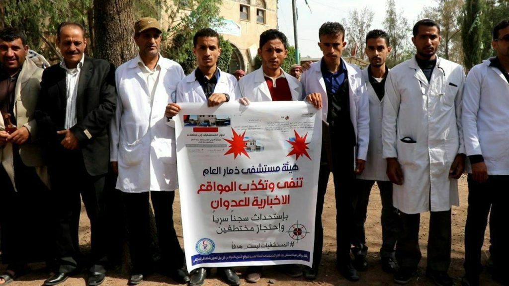 احتج أطباء وممرضو وموظفو هيئة مستشفى ذمار العام على حملة تحريض وسائل إعلام التحالف ضد المستشفى وزعم “وجود سجن سري لاحتجاز معتقلين أسفل المستشفى” .. نافين هذه المزاعم، ومحملين التحالف ووسائل إعلامه مسؤولية تبعاتها.