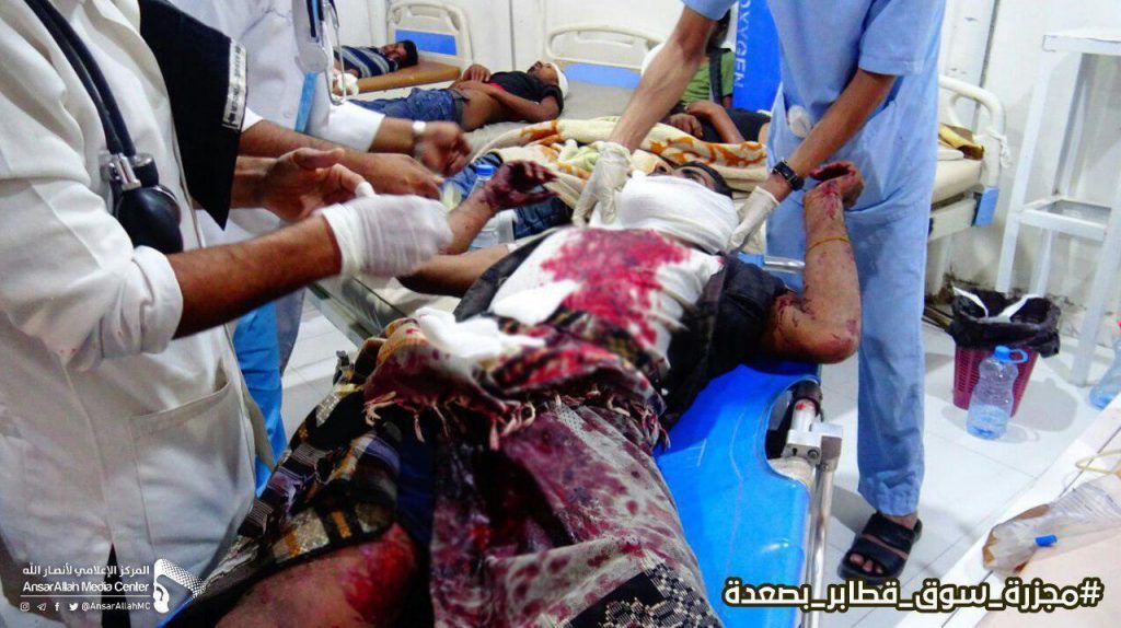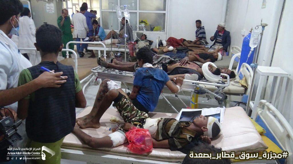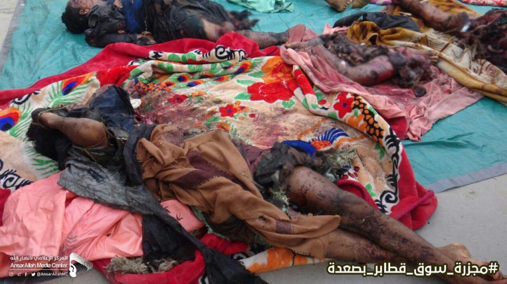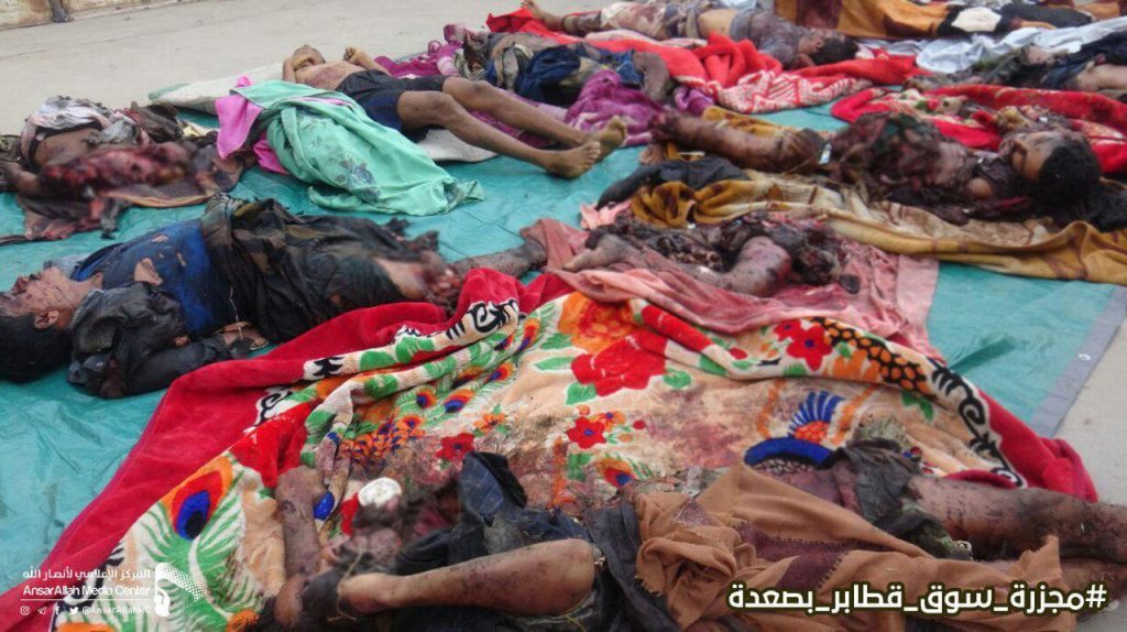 يُظهر التحالف بتكرار استهدافه الأسواق الشعبية، كما هي حال استهدافه تجمعات حفلات الزفاف ومجالس العزاء ومخيمات النازحين وغيرها من المرافق المدنية؛ إصرارا على أن يحيل هذه الأسواق والتجمعات إلى ساحات إعدام وإبادة جماعية.