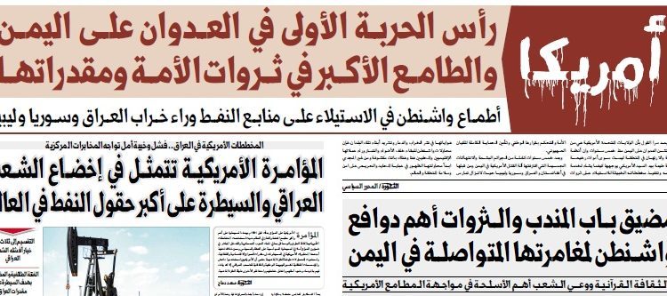 لم يعد سرا القول بأن الولايات المتحدة الأمريكية هي من تشن العدوان على اليمن منذ خمس سنوات وان أنظمة العمالة والارتهان في المنطقة ليست سوى أدوات رخيصة وبوصلة طيعة بيد السيد الأمريكي يوجهها كيفما يشاء لخدمة مصالحه وتنفيذ مخططاته الخبيثة للاستيلاء على ثروات الأمة والتحكم بقرارها الوطني وتأمين الحماية الكاملة للكيان الصهيوني.