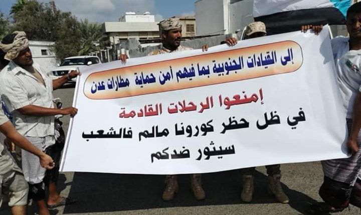 طالب العشرات من المواطنين، يوم الاحد، بالتصدي للمحاولات السعودية لإدخال فيروس كورونا إلى عبر مطار عدن الدولي .