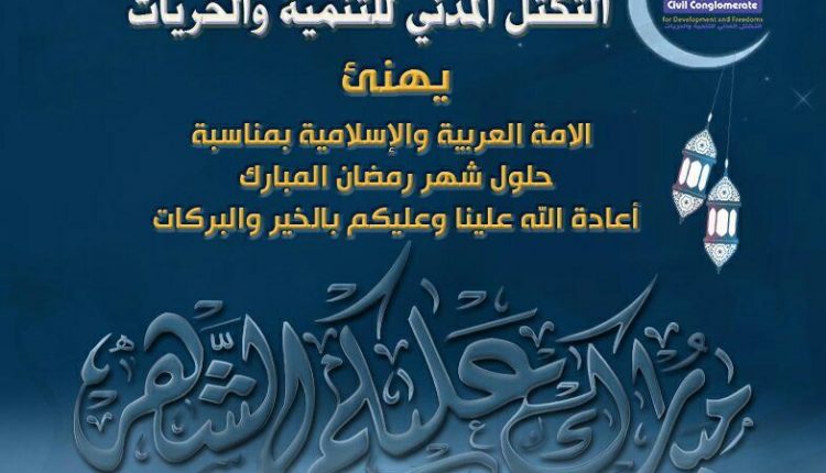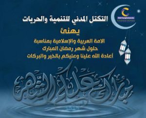 التوثيق المرئيمعرض الصور التكتل المدني للتنمية والحريات يهنئ الأمة العربية و الإسلامية بمناسبة حلول شهر رمضان المبارك On أبريل 22, 2020 Share Share FacebookTwitterGoogle+WhatsAppPinterestالبريد الإلكترونيLinkedinTelegramPrint