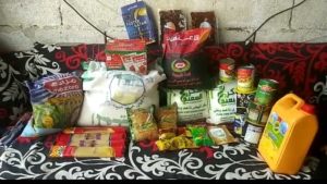 وبحسب قول محدثنا ” أن السلة الغذائية قد تكفية لمدة عشرون يوما وتنقذ أسرتي من الجوع فهي تتكون من الدقيق والأرز والسكر والزيت والشاي والصلصة وغيرها من المواد الأساسية التي تحتاجها أسرته و….