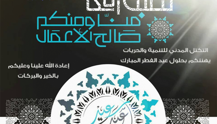 التوثيق المرئيمعرض الصور التكتل المدني للتنمية والحريات يهنئكم بحلول عيد الفطر المبارك On مايو 23, 2020 Share Share FacebookTwitterGoogle+WhatsAppPinterestالبريد الإلكترونيLinkedinTelegramPrint