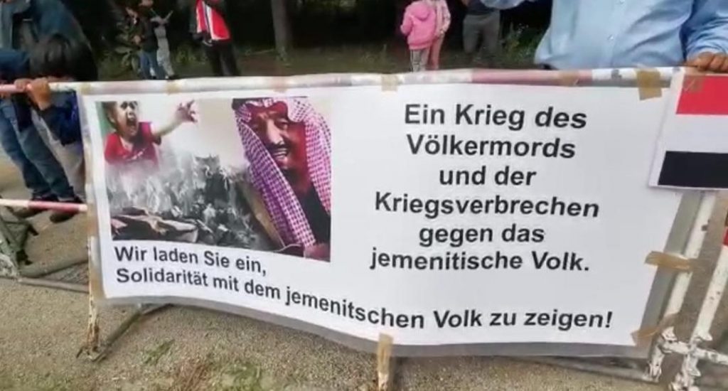 خرجت في العاصمة الالمانية برلين، احتجاجات حاشدة، مناهضة لحرب التحالف بقيادة السعودية والامارات على اليمن وحصاره، نفذتها الجاليات اليمنية والعربية وناشطون حقوقيون عرب والمان.