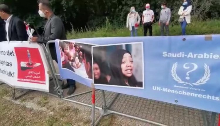 ونددت الوقفة الاحتجاجية التي نُفذت، السبت، أمام مبنى السفارة السعودية في برلين، باستمرار حرب التحالف وحصار الجائرين على اليمن، وتفاقم تداعياتهما الانسانية الكارثية على اليمنيين.