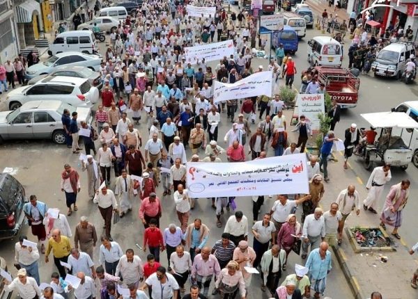 موظفو تعز يحتجون للمطالبة بصرف رواتبهم المتأخرة وتسوية أوضاعهم