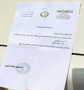 وحصلت “وكالة الصحافة اليمنية” على رسالة موجهة من قائد التحالف في عدن، إلى قادة النقاط الأمنية والعسكرية في “عدن، أبين، شبوة، مأرب” السماح بمرور القيادي في تنظيم القاعدة سعد بن عاطف العولقي، وقائد “لواء النقل الثقيل” الموال للإصلاح أمجد خالد القحطاني، دون أي اعتراض.