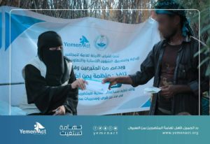 منظمة يمن آكت توزع مساعدات مالية على الأسر المتضررة من السيول في مديرية الدريهمي