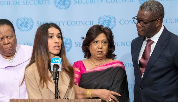 وقد منحت جائزة نوبل للسلام عام 2018 للناشطة العراقية الإيزيدية نادية مراد، سفيرة الأمم المتحدة للنوايا الحسنة، لكرامة الناجين من الاتجار بالبشر، والطبيب موكويغي.