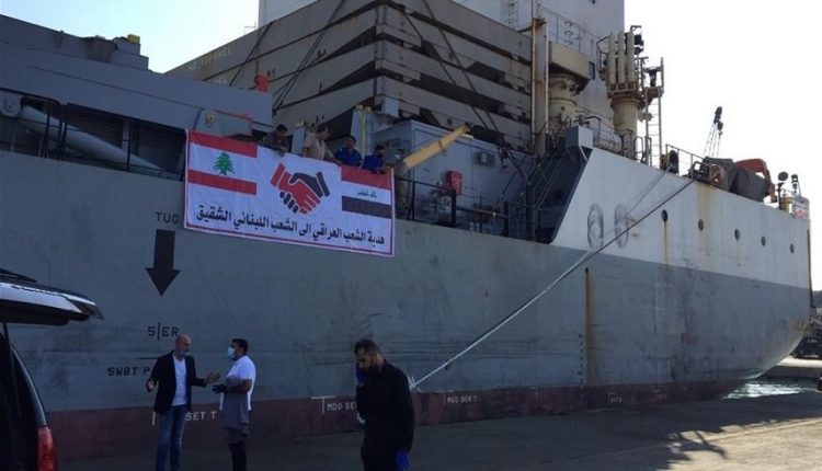 وحملت الباخرة لافتة كتبت عليها عبارة “هدية الشعب العراقي إلى الشعب اللبناني الشقيق”.