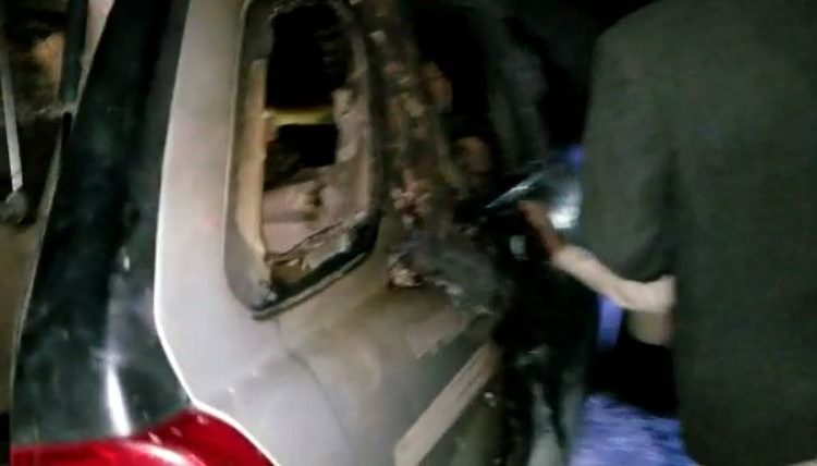 وهرع عدد من المواطنين إلى اطفاء النيران المشتعلة في السيارة التابعة لأحد المواطنين.