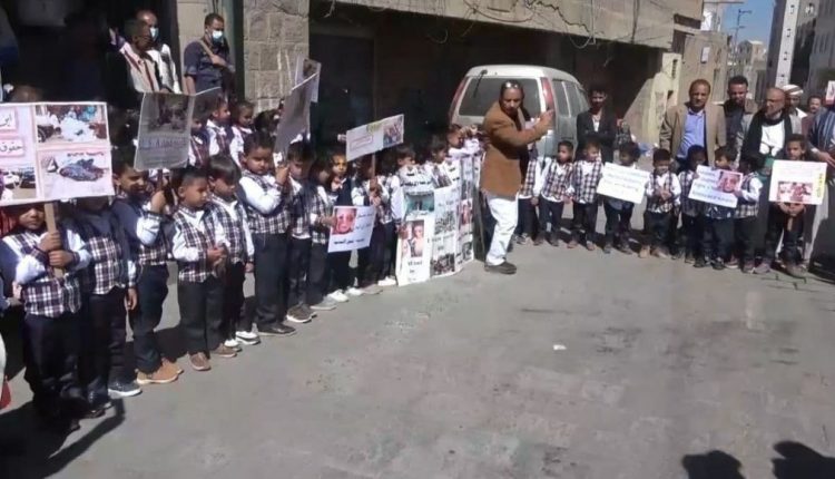 وقفة للأطفال في إب للتنديد بانتهاكات العدوان بحق الطفولة