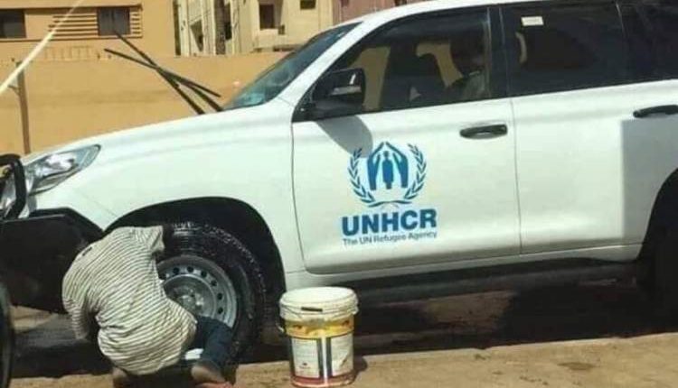 ونشروا صورة لسيارة تتبع احدى المنظمات التابعة للامم المتحدة وبجانبها طفل يقوم بغسلها لتوفير المال لاطعام اسرته.