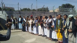 تتواصل الاحتجاجات المطالبة بإطلاق سفن النفط أمام مكتب الامم المتحدة في العاصمة صنعاء .