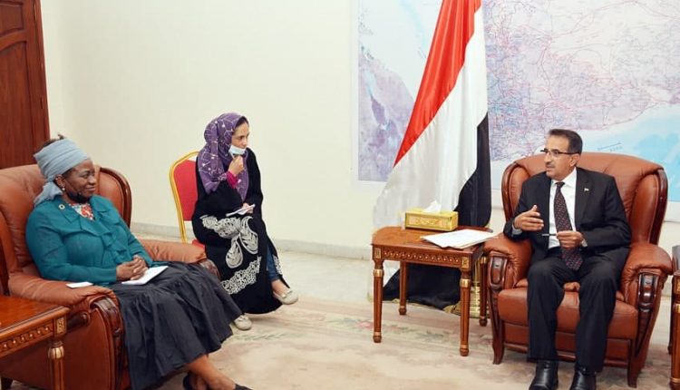 وجرى خلال اللقاء الذي حضره وزراء التخطيط عبدالعزيز الكميم والشؤون الاجتماعية والعمل عبيد بن ضبيع والصحة العامة والسكان الدكتور طه المتوكل، مناقشة مجالات التعاون وفي المقدمة أوضاع المرأة والطفل في ظل العدوان والحصار الأمريكي السعودي على اليمن المستمر منذ ست سنوات والأضرار التي لحقت بأكبر شريحتين اجتماعيتين جراء ذلك خاصة في الجوانب الأساسية علاوة على وقوع الكثير منهم ضحايا بغارات العدوان ومرتزقته.