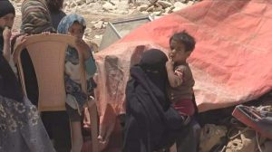 الصور التي تفضح جرائم قوى التحالف بمنع مغادرة النازحين واستخدامهم دروع بشرية لها