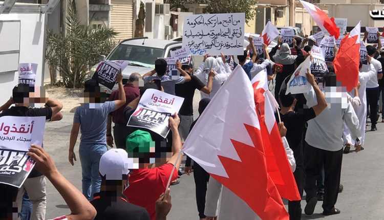 وانطلقت التظاهرات من جزيرة سترة والسنابس مرورا بالبلاد القديم والديه وصولا الى النويدرات ومناطق اخرى تنديدا بتعتيم النظام على عدد المعتقلين المصابين بالوباء.