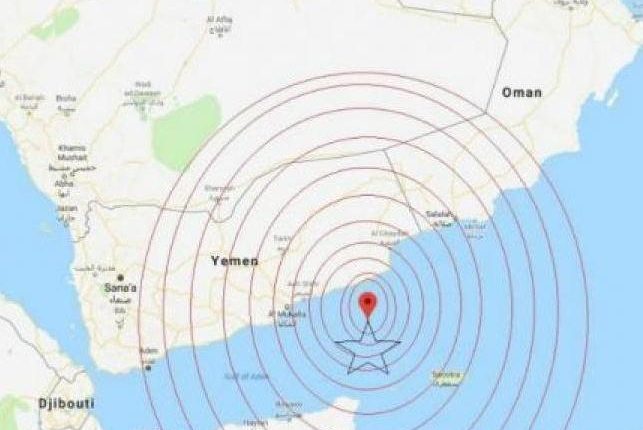 وتركزت بؤرة الهزة الزلزالية على عمق 5.5 كم وسط خليج عدن، وبمسافة 227كم عن المكلا.