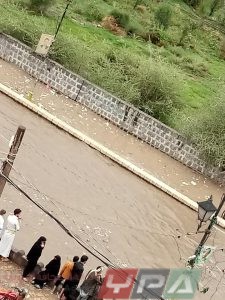 وظهرت سائلة صنعاء، وكأنها أحد الأنهار بعد امتلائها بالسيول.