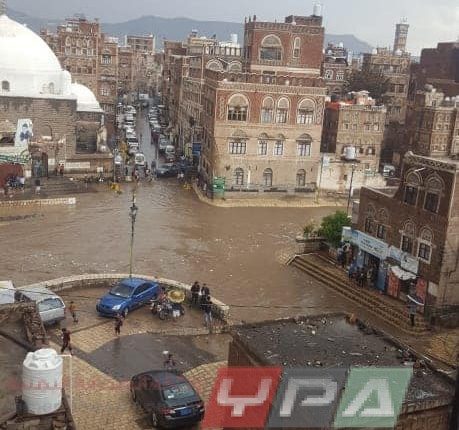 وتأتي هذه السيول نتيجة هطول أمطار غزيرة مصحوبة بعواصف رعدية في العاصمة صنعاء وضواحيها بعد فترة من الانقطاع.