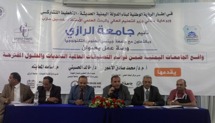 طالب خبراء وأكاديميون بتحسين أوضاع التعليم الجامعي وزيادة ميزانيات البحث العلمي والتوسع في البنى التحتية لمؤسساته في اليمن. ودعا المشاركون في ختام أعمال ورشة علمية اليوم بجامعة الرازي بصنعاء بالتعاون مع جامعة جينيس للعلوم والتكنولوجيا حول ” واقع الجامعات اليمنية ضمن قوائم التصنيفات العالمية” لانشاء مشروع تصنيف محلي للجامعات اليمنية بإشراف وزارة التعليم العالي. وأكد المشاركون أهمية الارتقاء بالبحث العلمي والتأليف وتحويل الأفكار العلمية والتطبيقية المبدعة إلى مشاريع لصالح المجتمع وقضاياه. وطالبت التوصيات بإنشاء مراكز متخصصة لجذب الطلاب الدوليين الوافدين للدراسة في الجامعات اليمنية، ووضع إستراتيجية وطنية للبحث العلمي والانتقال به من النمطية الى أبحاث تخدم الصناعة والتجارة واحتياجات التنمية. وشدد التوصيات على ضرورة امتلاك الجامعات معامل ومراكز بحثية مزودة بالإمكانات المناسبة وفقاً للمعايير المحلية والعالمية والعمل على زيادة الإنتاج العلمي في ترجمة الكتب والأبحاث وتشجيع النشر بلغات أخرى. وحثت على إنشاء صندوق للبحث العلمي وتشجيع هيئات التدريس على نشر أبحاثهم في مجلات دولية محكمة وتأسيس قاعدة بيانات عن العلماء اليمنيين في الخارج وجعلهم حلقة وصل بين مؤسساتهم والجامعات اليمنية. وأوصى المشاركون بتوثيق نتاج الجامعات اليمنية الكترونياً وبناء مستودع رقمي موحد للإنتاج العلمي وإطلاق المنصة الرقمية للمجلات العلمية اليمنية عبر الوزارة. وفي الورشة أفاد نائب وزير التعليم العالي الدكتور علي شرف الدين أن الورشة تأتي تنفيذا لمضامين واهداف الرؤية الوطنية في مرحلتها الثانية. وأشار إلى أهمية تطوير القدرات التنافسية للمؤسسات العلمية والبحثية وكوادرها للحصول على مراكز متقدمة في التصنيف العالمي للجامعات. فيما أكد مدير مركز تقنية المعلومات الدكتور فؤاد عبد الرزاق، ورئيس مجلس أمناء الجامعة الدكتور طارق النهمي ، ورئيسها الدكتور خليل الوجيه أهمية التصنيفات العالمية في تقويم أداء الجامعات في مجالاتها كافة. واستعرض المشاركون ثلاث أوراق عمل الأولى حول أنواع التصنيفات العالمية للجامعات” للدكتور محمد الأعور، والثانية عن “واقع الجامعات اليمنية في التصنيف العالمي رؤية نقدية” للدكتور خالد الحسيني، وقدمت الثالثة “خطة مقترحة للسيناريوهات البديلة لوضع الجامعات اليمنية في التصنيفات العالمية ” للمهندس إسامة المعاينة. |