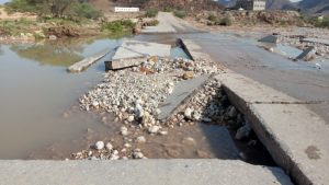 تسببت الأمطار الغزيزة بإنهيار جسر وادي ثنية في مديرية الروضة بمحافظة شبوة النفطية.