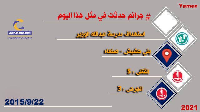 التوثيق المرئيمعرض الصور جرائم حدثت في مثل هذا اليوم 22سبتمبر On سبتمبر 22, 2021 Share Share FacebookTwitterGoogle+WhatsAppPinterestالبريد الإلكترونيLinkedinTelegramPrint