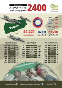 كشف مركز عين الانسانية اليوم عن إحصائيات جرائم التحالف خلال 2400 يوم من حربه العدوانية على اليمن .