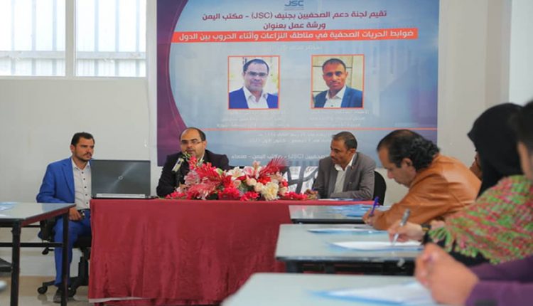 نظمت لجنة دعم الصحفيين بجنيف عبر مكتبها في اليمن اليوم، ورشة عمل بعنوان “ضوابط الحريات الصحفية في مناطق النزاعات وأثناء الحروب بين الدول”.