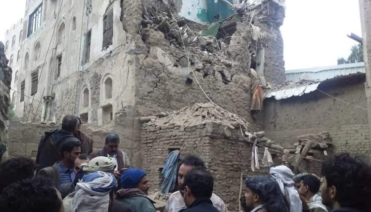 الدفاع المدني يتمكن من إخلاء 8 أسر من منزل بمدينة صنعاء القديمة
