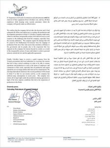 وجدد مدير الشركة مطالبته لكافة المقاولين من الباطن سحب معداتهم من المواقع الميدانية لشركة كالفالي مع بقاء بعض افراد الحراسة الأمنية.